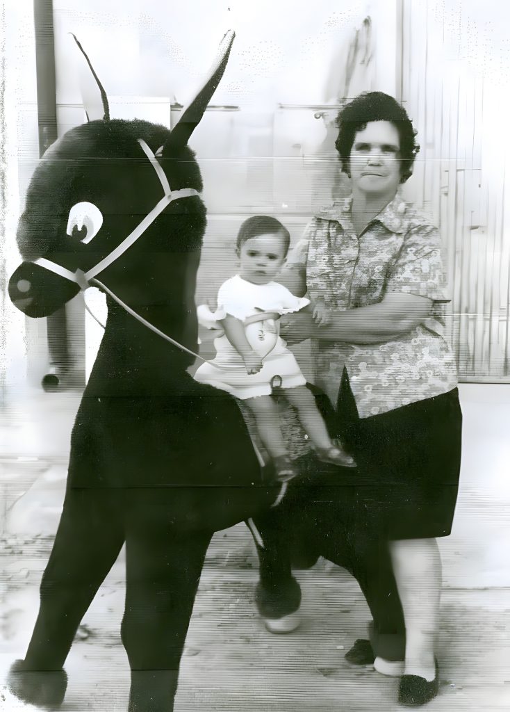 Pasaba los veranos y Navidades con ella. Mi cumpleaños es el 22 de diciembre y con el sonido del sorteo de Navidad nos íbamos en el Renault 8 azul hasta Madrid donde mi familia paterna nos esperaba. Me gustaba ver el brillo en sus ojos pequeños al cantarme el cumpleaños feliz. Hay una foto donde Sofía me mostraba su ternura con una mirada de complicidad y esperanza.